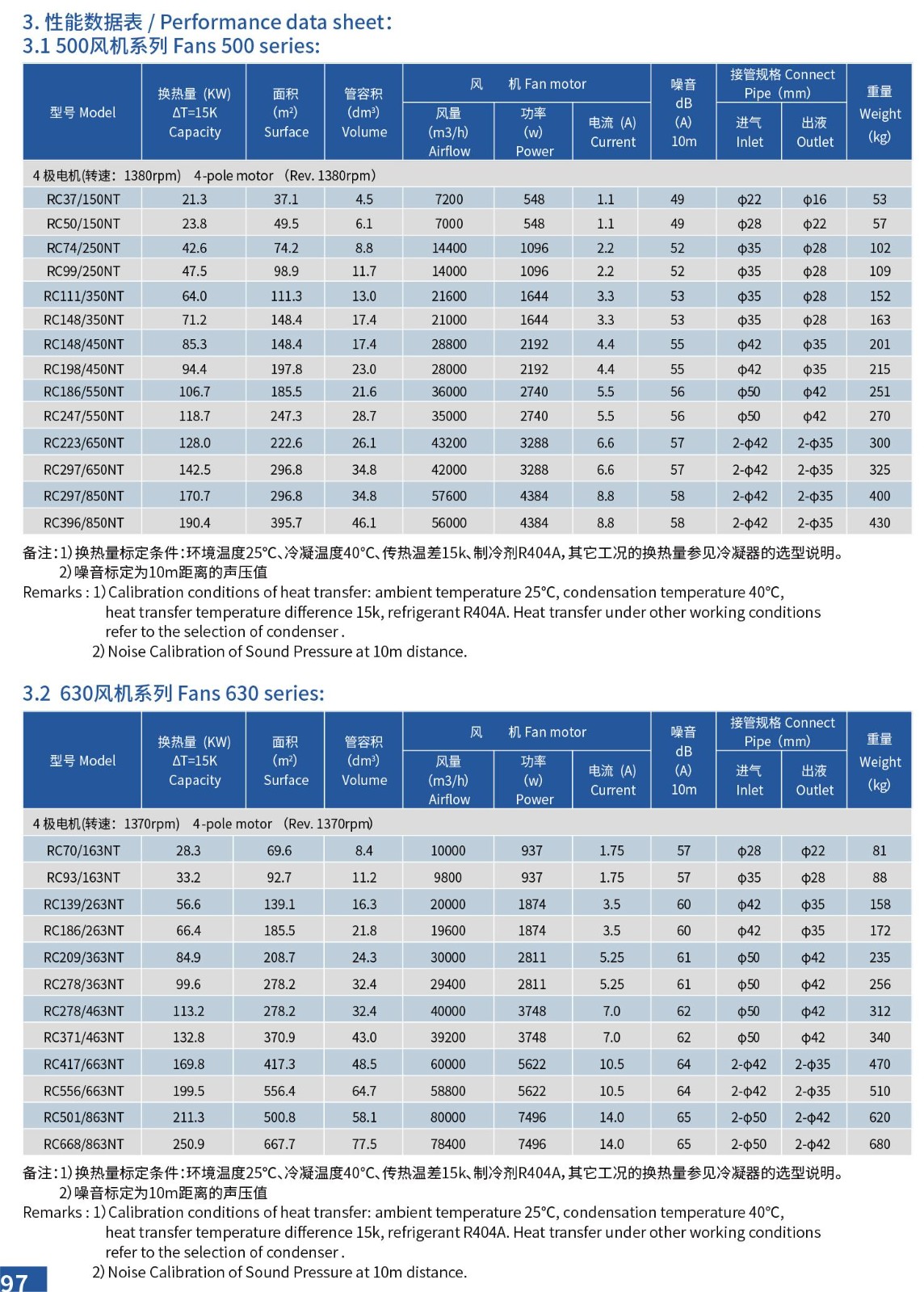 RC系列冷凝器主要配套具有较大换热量需求的采用远置式安装的大匹数的冷凝机组、活塞并联机组及螺杆机组等使用